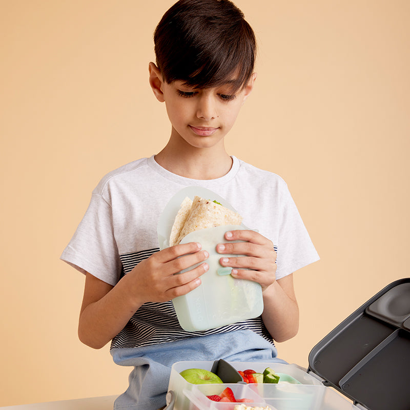 Fini le plastique à usage unique, grâce à notre pochette réutilisable en silicone pour le déjeuner ! Vous pouvez désormais emporter un large éventail d'en-cas et de déjeuners sains, des sandwichs aux sushis en passant par les bagels, les wraps et bien d'autres choses encore.