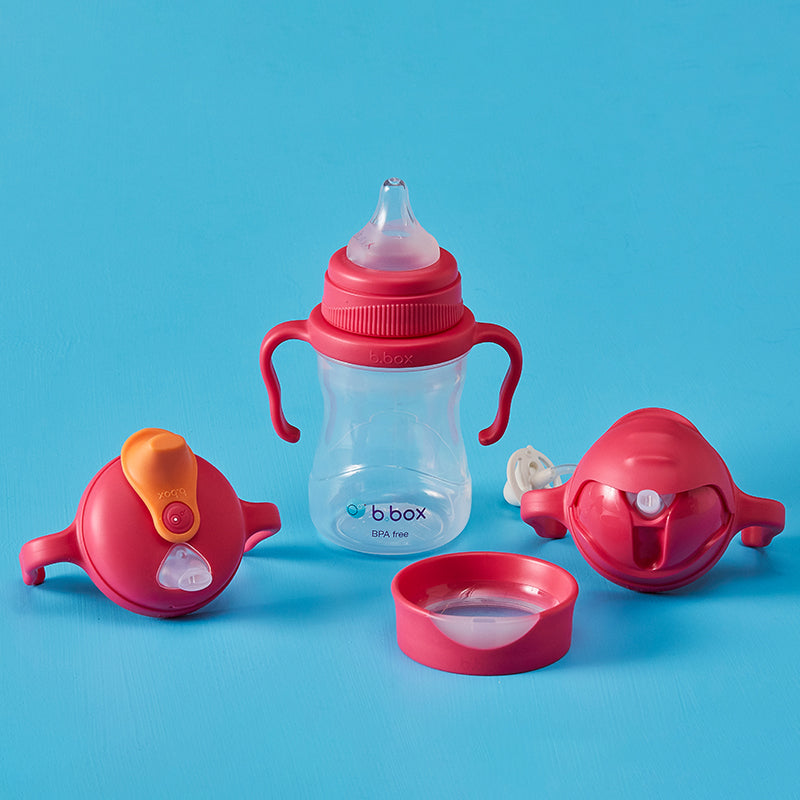 Les ergothérapeutes et orthophonistes pédiatriques recommandent d'utiliser différents types de tasses, en alternant les tasses à bec, les tasses à paille et les tasses ouvertes, au fur et à mesure que les bébés explorent et grandissent en fonction de leur âge et de leur stade de développement. C'est là qu'intervient notre pack 4 en 1, l'ensemble de valeur ultime, qui permet à bébé de passer de l'allaitement ou du biberon aux grandes gorgées des enfants.