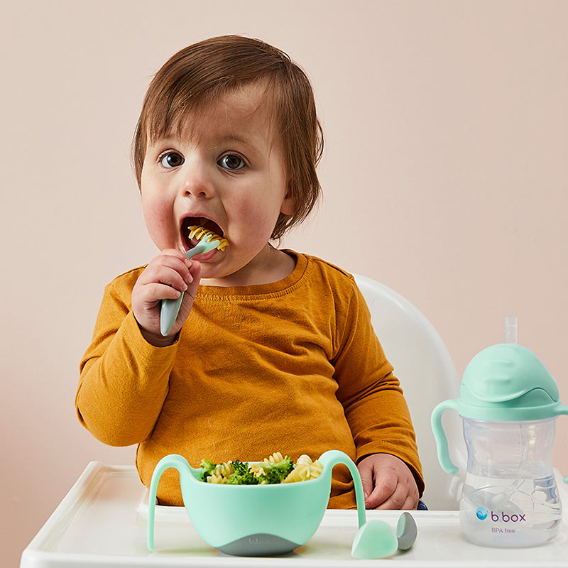 Gebruik de siliconen snackinzet om onderweg te snacken zonder gedoe. Voor cornflakes of soep verwijder je gewoon het inzetstuk, bevestig je ons unieke rietje en klem je het aan de zijkant van de kom. En voor wie liever slurpt, kantel je de kom en drink je uit de unieke druppelvorm.