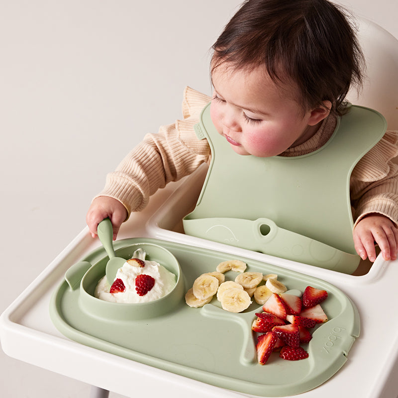 Geniet van probleemloze maaltijden met onze compacte en reisvriendelijke voedingsmat. Dit anti-slip voedingsoppervlak is een combinatie van een kom en een bord en wordt geleverd met een diepe lepel. Bestel gewoon je favoriete eten, deel het met je kind en geniet. Eet smakelijk!